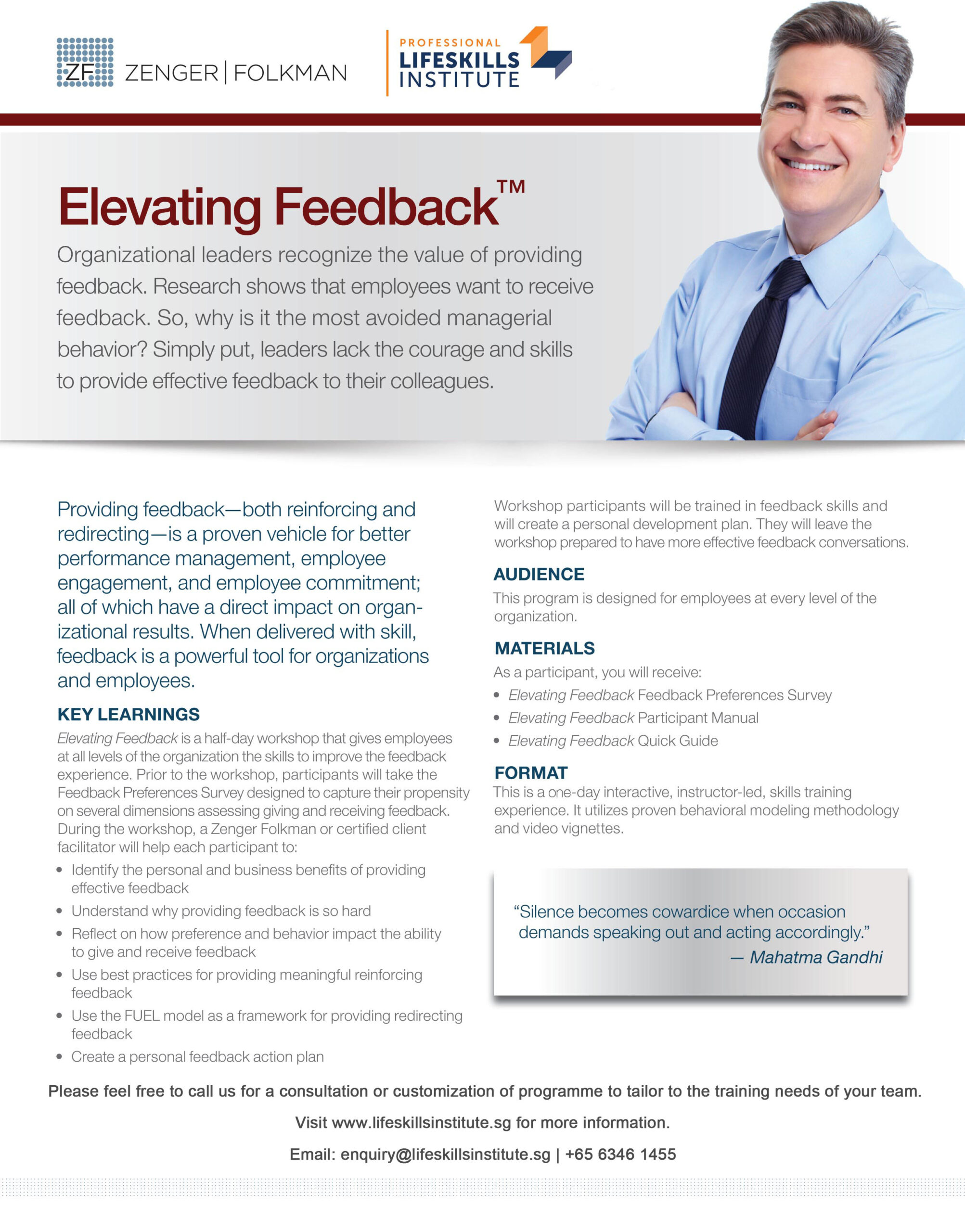 - Elevating Feedback Participant Manual – a reference workbook, toolset to empower effective feedback.